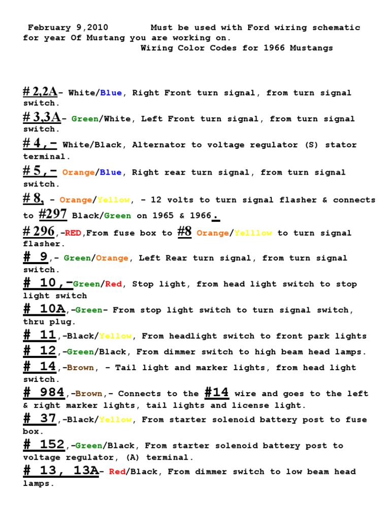 1966 Mustang Wiring Color Coding | Switch